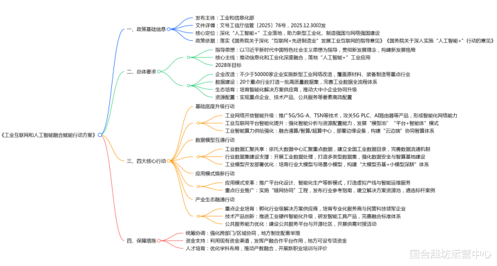 《行动方案》提出清晰的阶段性目标,到2028年将实现多维度突破: - 网络改造:推动不少于50000家企业实施新型工业网络改造升级,覆盖原材料、装备制造、消费品、电子信息等重点行业,满足人工智能工业应用高通量、低时延等核心需求; - 数据建设:在20个重点行业打造一批高质量数据集,完善工业数据汇聚、治理、流通、共享体系; - 生态培育:培育一批智能化解决方案供应商,推动大中小企业协同升级,实现重点企业、技术产品、公共服务等要素资源高效配置。