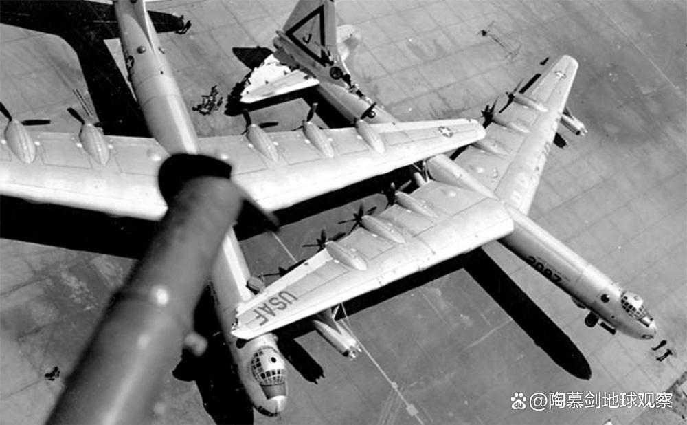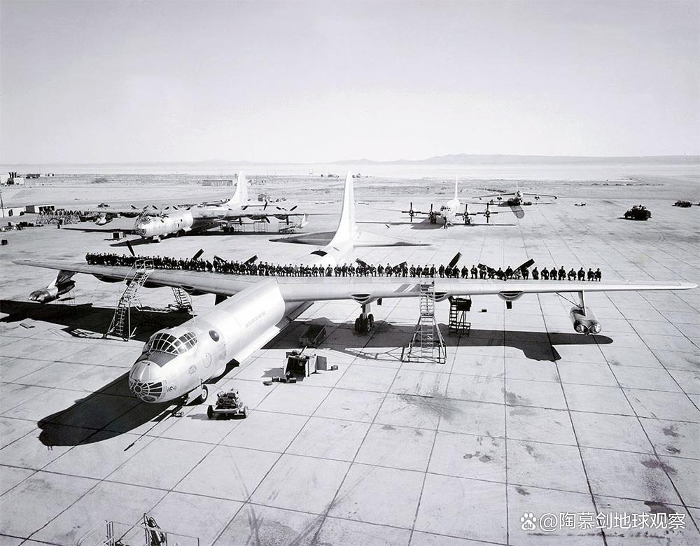 当时,B-36“和平缔造者”是美国战略空军司令部的主力洲际轰炸机(B-29、B-50不具备洲际轰炸机能力),承担了美国空中核打击的主要值班任务。更先进的B-47轰炸机当时刚服役,尚未形成战斗力,而著名的B-52轰炸机当时刚刚试飞,1955年才入服役。也就是说,沃斯堡停放的100多架B-36轰炸机,基本就是美军手头最强大的一支核打击力量。